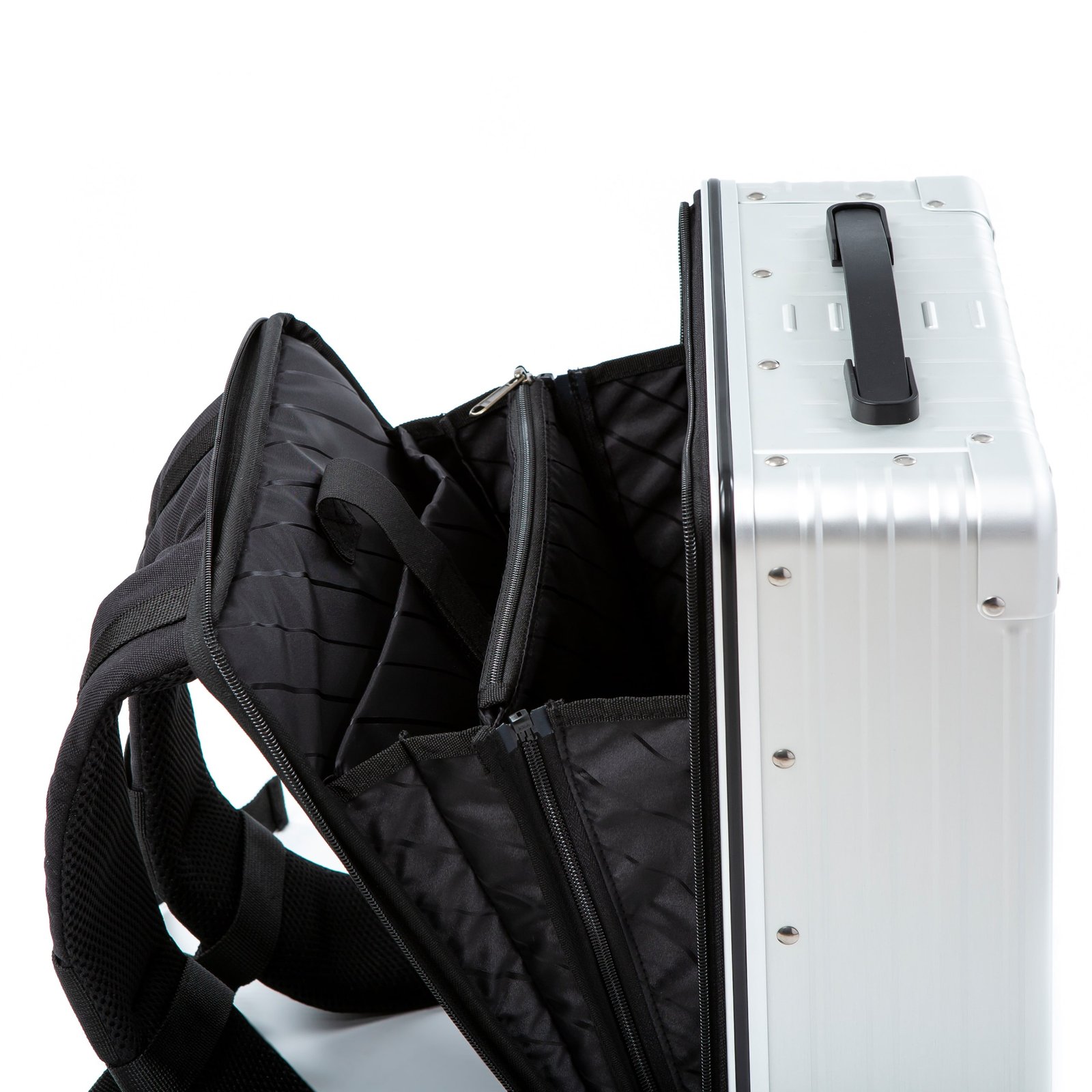 Die Außenschale des ActiCase Rucksacks besteht aus hochwertigem Aluminium, das Ihre Geräte vor Stößen, Stürzen und den Elementen schützt. Diese robuste Konstruktion sorgt dafür, dass Ihr Laptop und andere empfindliche Geräte auch unter anspruchsvollen Bedingungen sicher aufbewahrt werden.