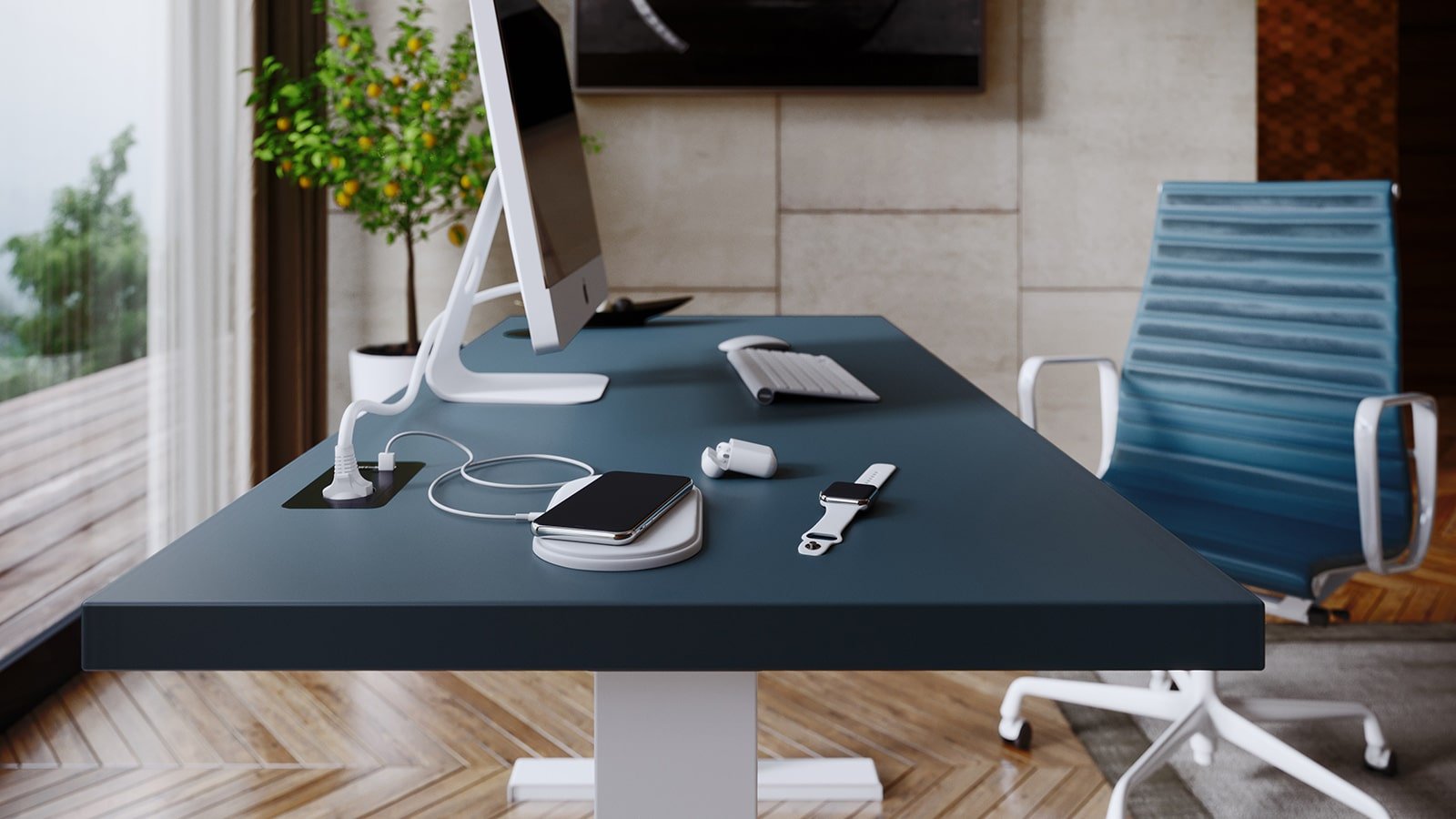 Das innovative Cabletop®-Konzept verbirgt sämtliche Kabel elegant in der Tischplatte. An Bord sind eine integrierte Schukosteckdose und zwei USB-Ports – für Direktladung von Laptop und Mobilgeräten, ganz ohne Kabelsalat.