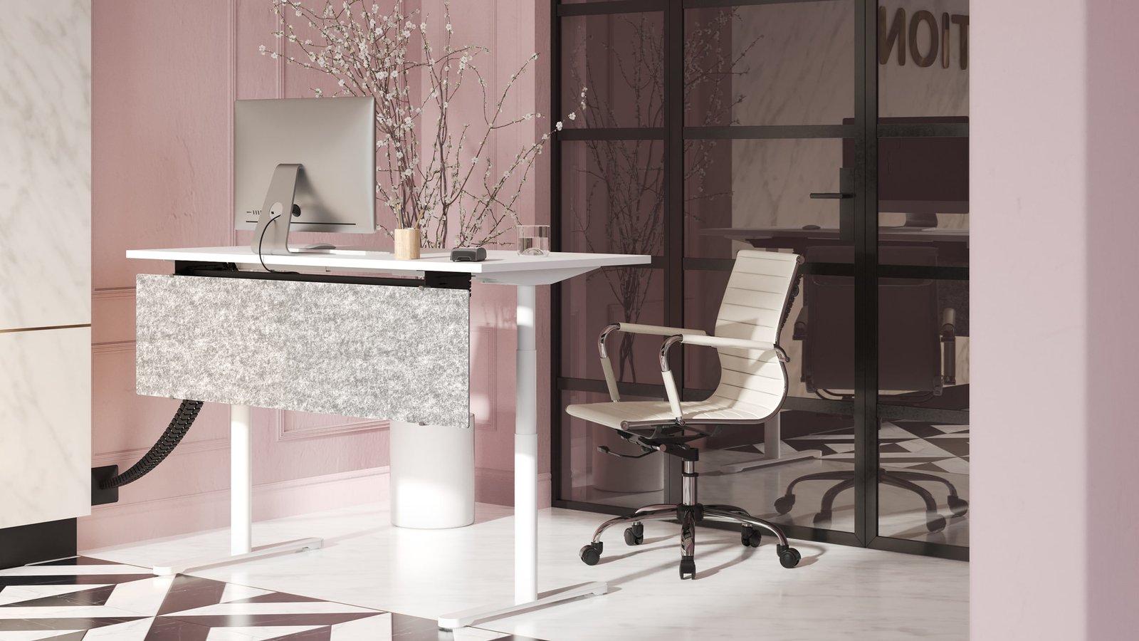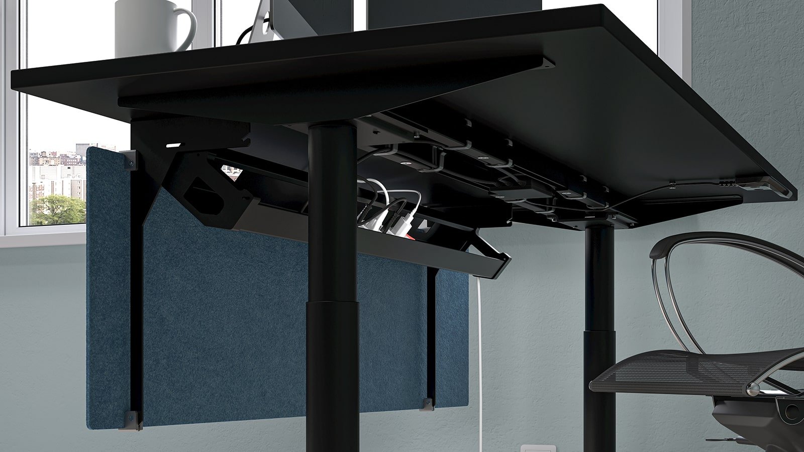 Erleben Sie konzentriertes Arbeiten in einer komfortablen und diskreten Umgebung – mit der Knieraumblendenhalterung, dem stilvollen Begleiter für Ihren Schreibtisch.