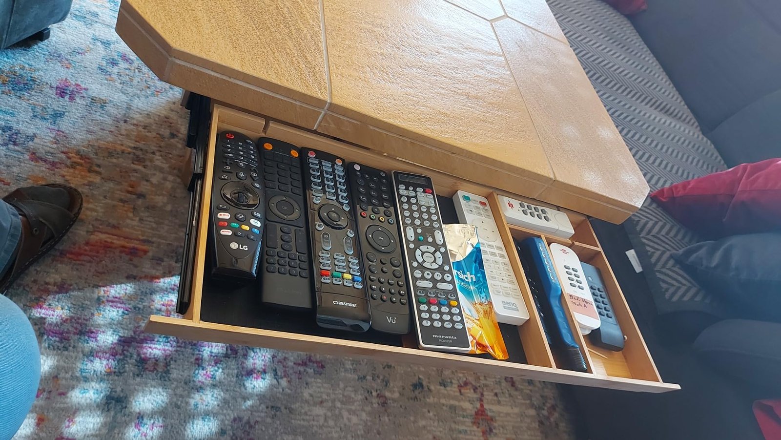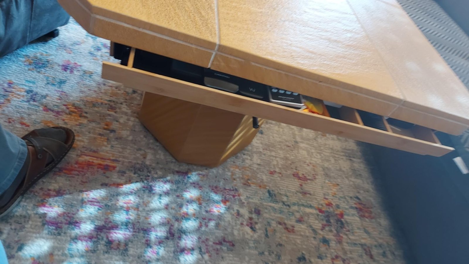 Die Schublade muss nicht zusammengebaut werden und kann gleich unter dem Tisch mit den 6 enthaltenen Schrauben angebracht werden. Das grösste Fach ist ein wenig grösser als eine A4 Seite, wobei die anti-rutsch Matte bei mir ein wenig zu gross ist und daher eine kleine Welle macht (mit Schere ohne Probleme kürzbar).