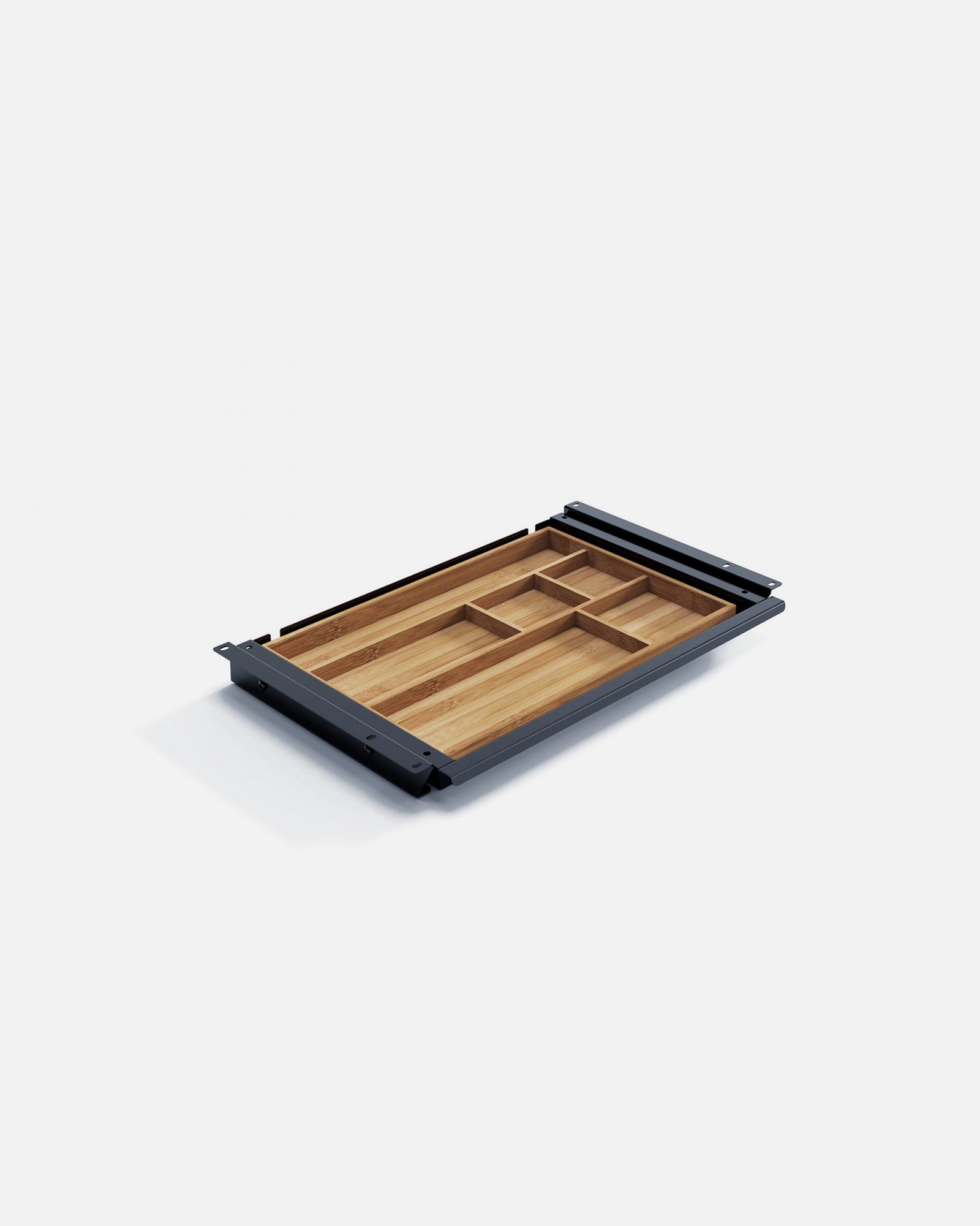 Wie alle unsere Schubladen ist auch die SN GRIP mit einem praktischen Bambus-Inlay ausgestattet. Dieses nachhaltige Inlay bietet separate Fächer zur übersichtlichen Aufbewahrung von Stiften, Notizzetteln, Büroklammern und anderen kleineren Gegenständen.