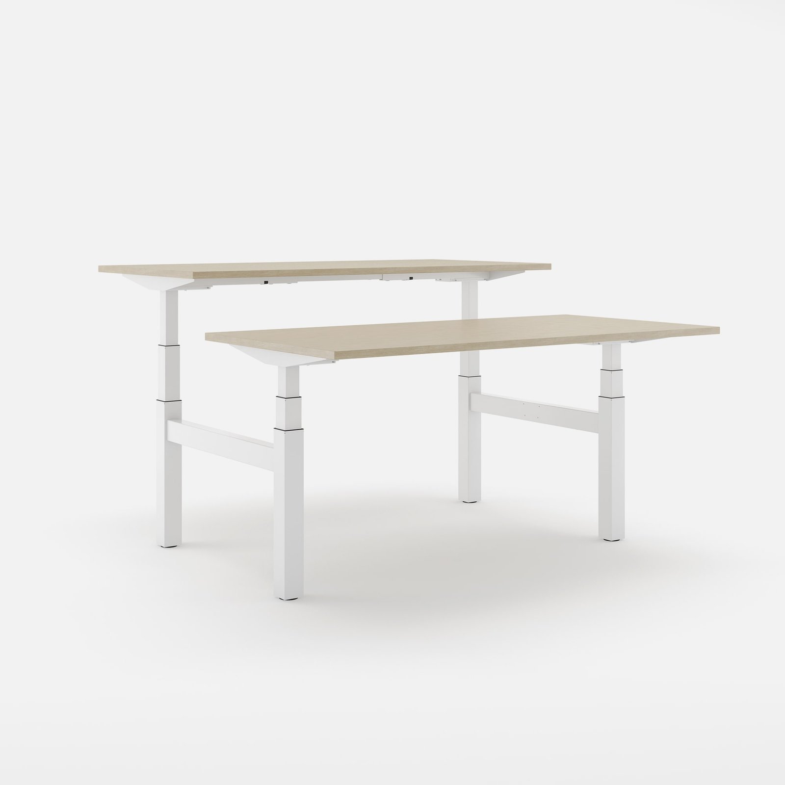 Das Doppelgestell ist unglaublich durchdacht. Die individuelle Höhenverstellung ist ein Segen, da mein Kollege und ich unterschiedliche Körpergrößen haben. Ich bin besonders vom ruhigen Betrieb beeindruckt – trotz der zwei Tische und der hohen Geschwindigkeit beim Hochfahren ist kaum ein Geräusch zu hören.